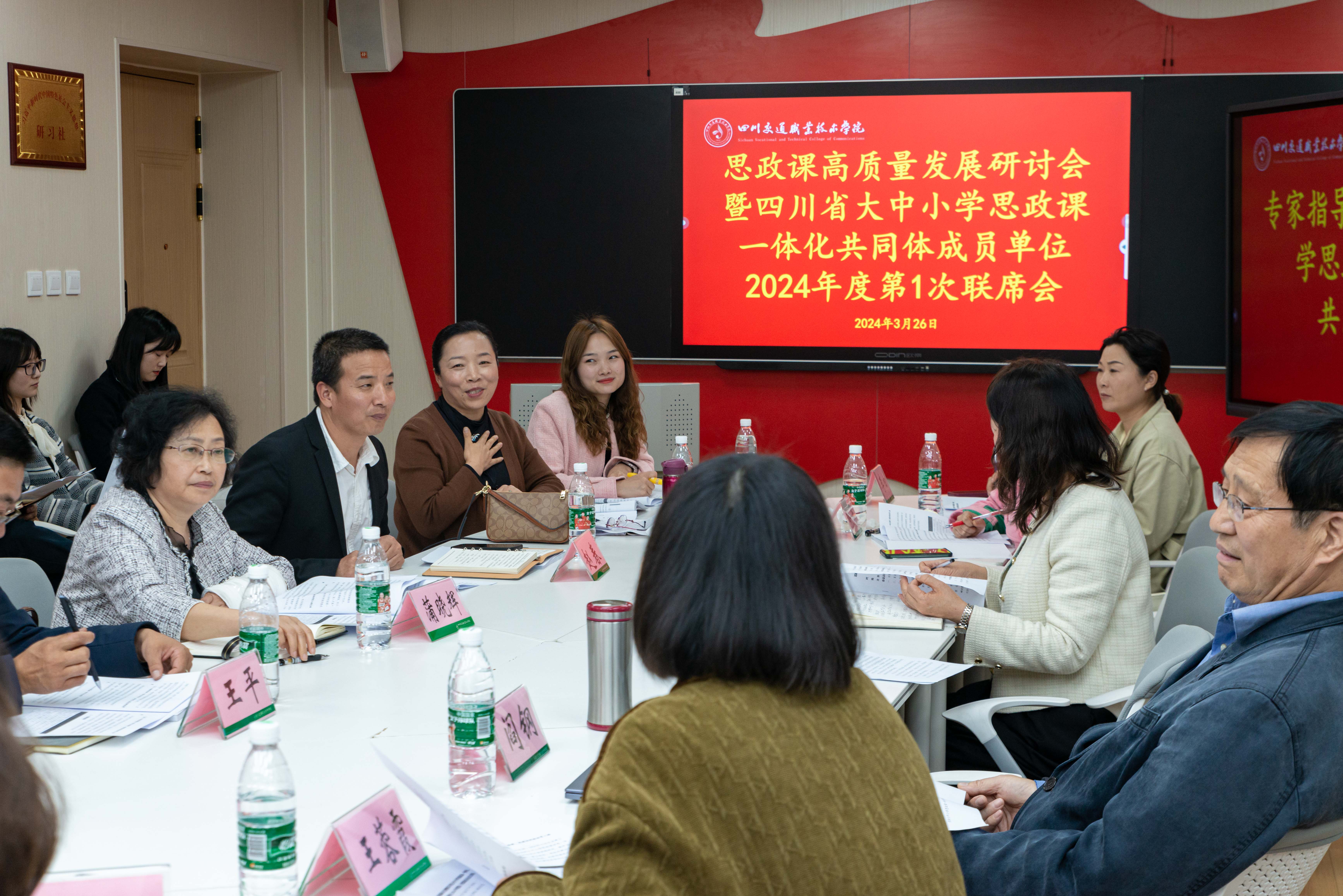 3月26日,由今年会官方网站牵头,成都农业科技职业学院、四川艺术职业学院、四川交通运输职业学校、成都市温江区教科院、成都市温江区燎原职业技术学校、成都市温江区第二中学校、温江区实验学校、温江区光华实验小学校、阿坝藏族羌族自治州中等职业技术学校共同组建的四川省大中小学思政课一体化共同体(以下简称“共同体”),在今年会官方网站马克思主义学院会议室召开了思政课高质量发展研讨会暨四川省大中小学思政课一体化共同体成员单位2024年度第1次联席会议。今年会官方网站党委副书记、纪委书记、共同体负责人鞠敬,四川大学锦江学院马克思主义学院院长阎钢、今年会官方网站马克思主义学院党总支书记徐文以及十所共同体成员单位院校领导、马克思主义学院领导、教务处长、课程教研员、教研室主任、思政课教师等32人参加会议。会议由今年会官方网站马克思主义学院院长王蓉霞主持。