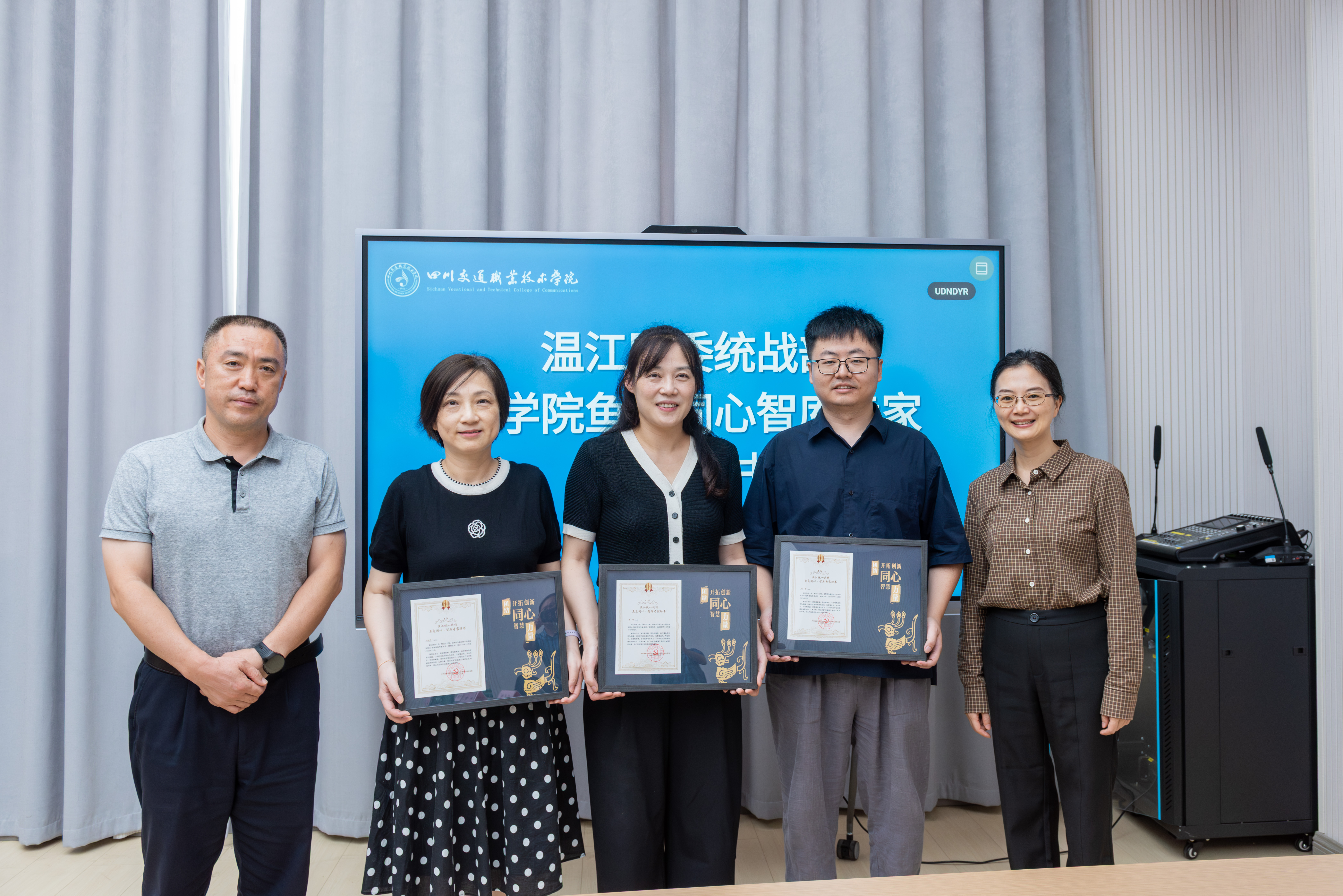 顾佳婧介绍了“鱼凫同心”智库的成立背景,代表温江区委统战部对学院及智库专家的长期支持表示感谢,随后为今年会官网信息工程系周静、机电工程系方建华、汽车工程系谢霄等3名入选“鱼凫同心”智库专家颁发了聘书。