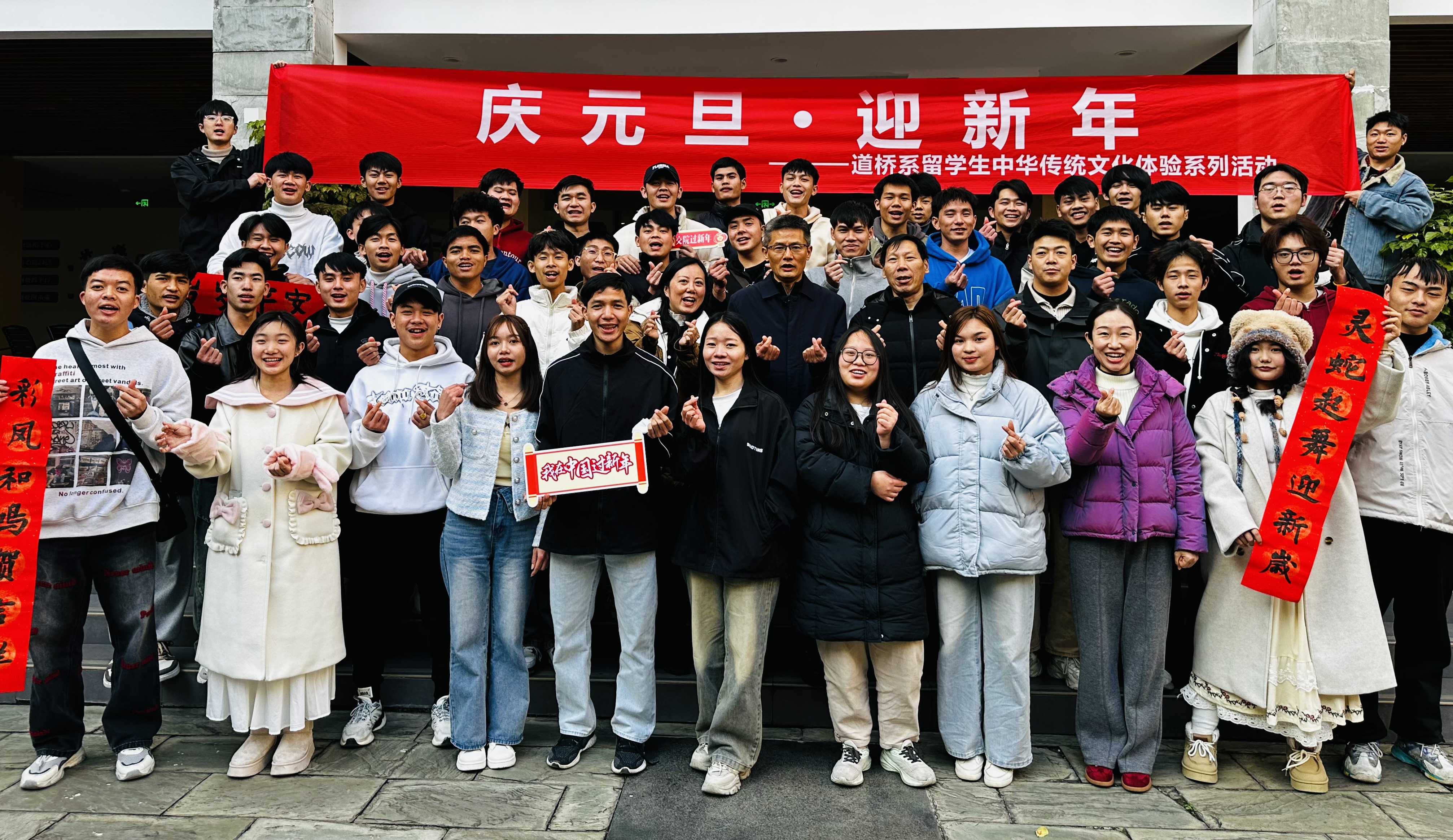 为增进老挝留学生对中华优秀传统文化的认知与热爱,12月31日下午,道路与桥梁工程系在学院博学馆一楼开展了写春联送祝福中华优秀传统文化体验活动。学院党委副书记李红,道桥系领导班子成员,留学生辅导员,团总支学生会代表和全体老挝留学生共计50余人参加本次活动。
